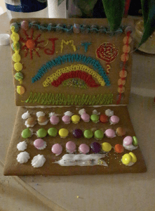 After a tense start (are all the gingerbread bakers booked up already? Will we have to bake them ourselves? Will the laws of physics allow for the laptops to stand up properly?) it started to come together.