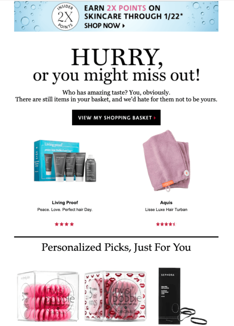 For example, Sephora is recommending top beauty picks based on their customers favorite products.
