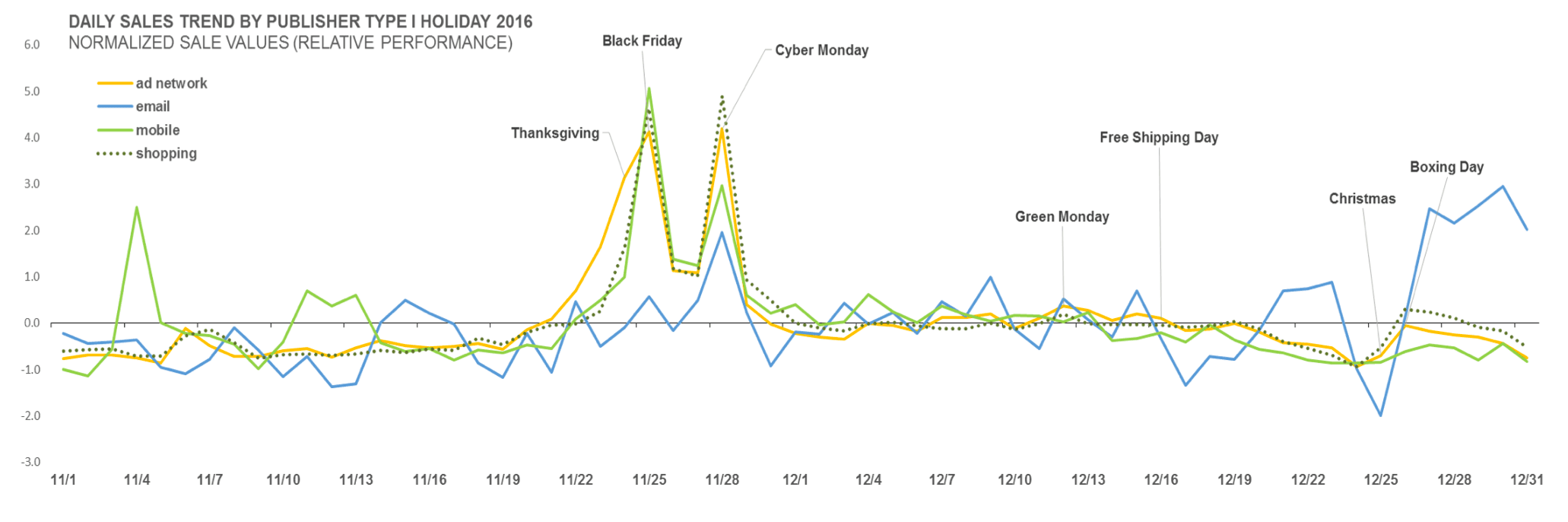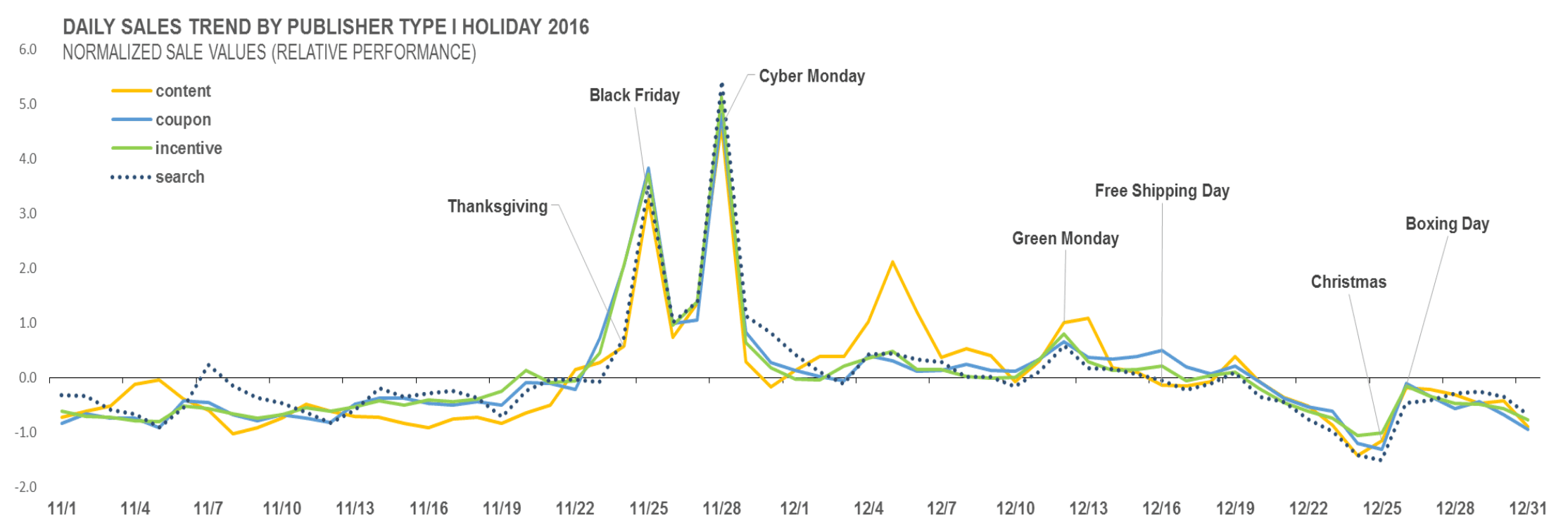 Across the global CJ Affiliate network, the winter holiday period in 2016 followed many of the same rules we’ve come to expect: Black Friday and Cyber Monday dominated, and early to mid-December was the next most lucrative sales period.