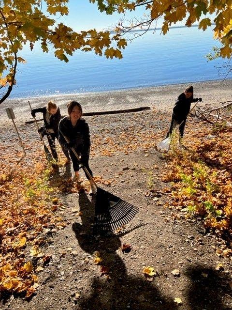 During our latest visit, Epsilon volunteers helped prepare the island for a group of students that would be arriving later in the afternoon. Our volunteers set up kayaking stations, raked leaves and cleared paths that would later be used by the 90 students visiting for a day of activities. They set the stage for the lessons and team-building exercises that the visiting students would be participating in.