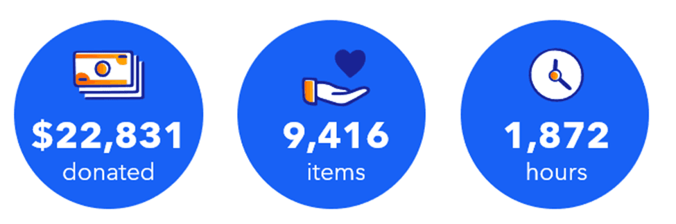 By contributing our time, money and goods, we reached over 225 charitable organizations and impacted over 38,000 lives.