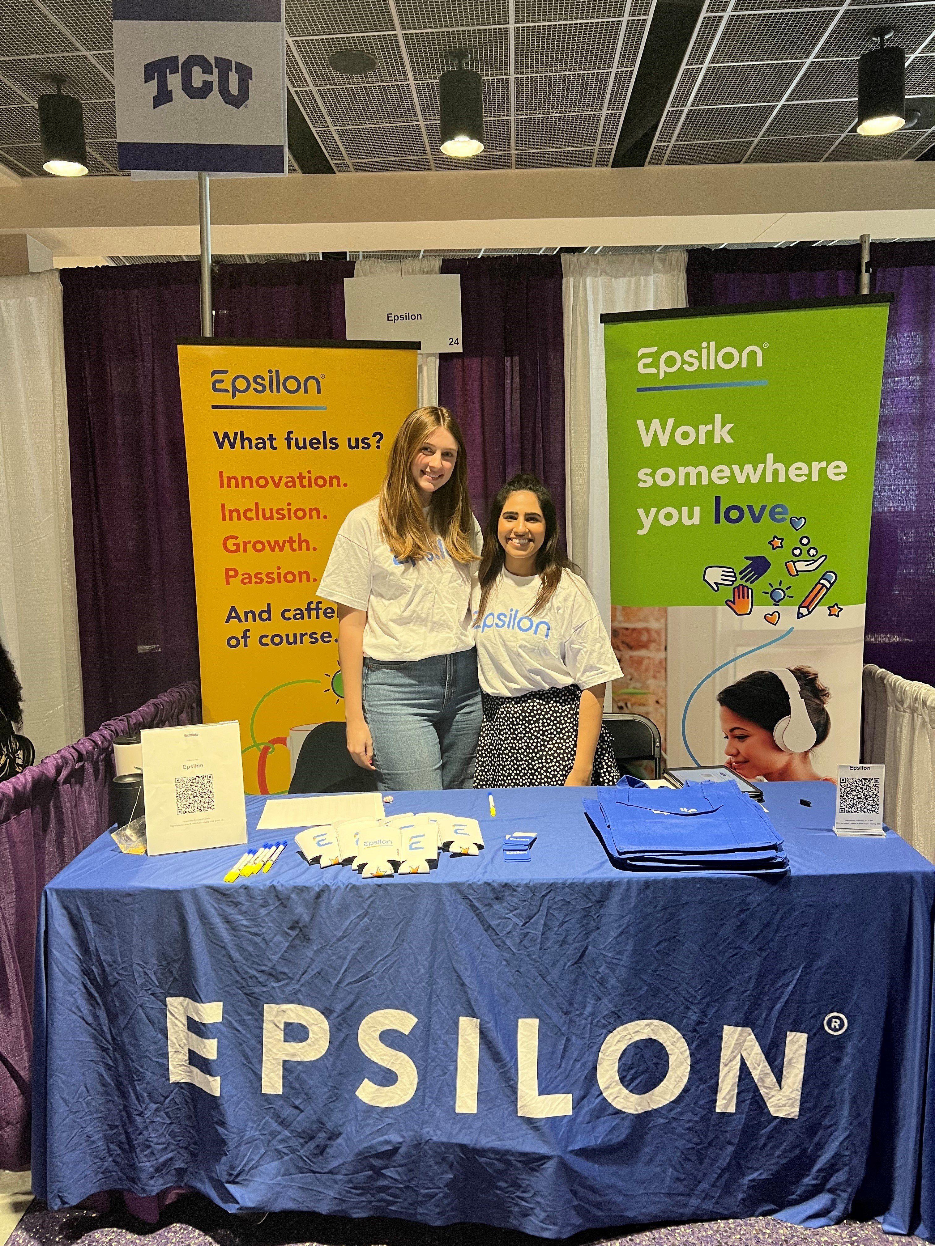Career fairs stand out as pivotal events in Epsilon's campus recruiting calendar, providing a platform to connect with ambitious students eager to explore career opportunities. This Spring, Epsilon attended fifteen career fairs across the United States. At these bustling events, Epsilon representatives engage with students, offering insights into the company's culture, values, and career paths. With an emphasis on fostering meaningful connections, recruiters seek to understand students' aspirations and career goals, tailoring their approach to resonate with diverse interests and backgrounds.