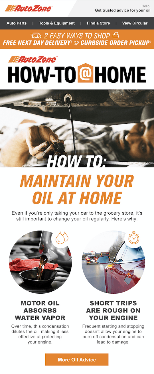 Epsilon helped AutoZone modify their email calendar and take a whole new strategic direction. We changed their content to focus less on selling and more on helping. As a result, we created a 6-part educational email series called AutoZone HOW-TO@HOME. These emails helped customers stretch their dollars and leveraged step-by-step videos that taught them how to complete car projects themselves, without paying a mechanic. Using video in this trusted advice series drove engagement and resulted in a positive response from customers, with week-over-week increases in open and click rates.
