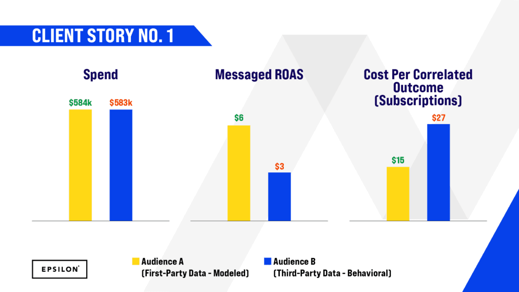 Although the two campaigns spent the same amount, audience A had double the reach and performance, and the cost per correlated outcome was 45% less.