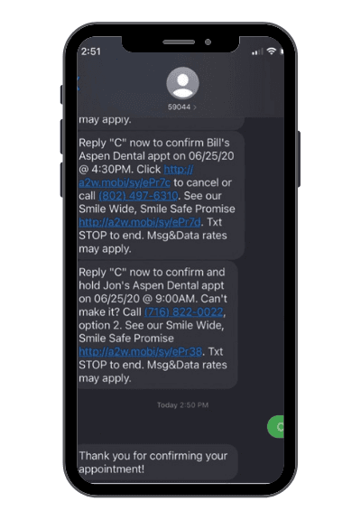 The dental practice group uses SMS to ask patients to confirm their appointment and sends a link to fill out insurance forms.