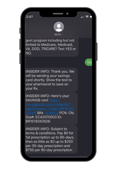 This prescription medication for dry eyes uses SMS to deliver electronic copay savings cards to patients.