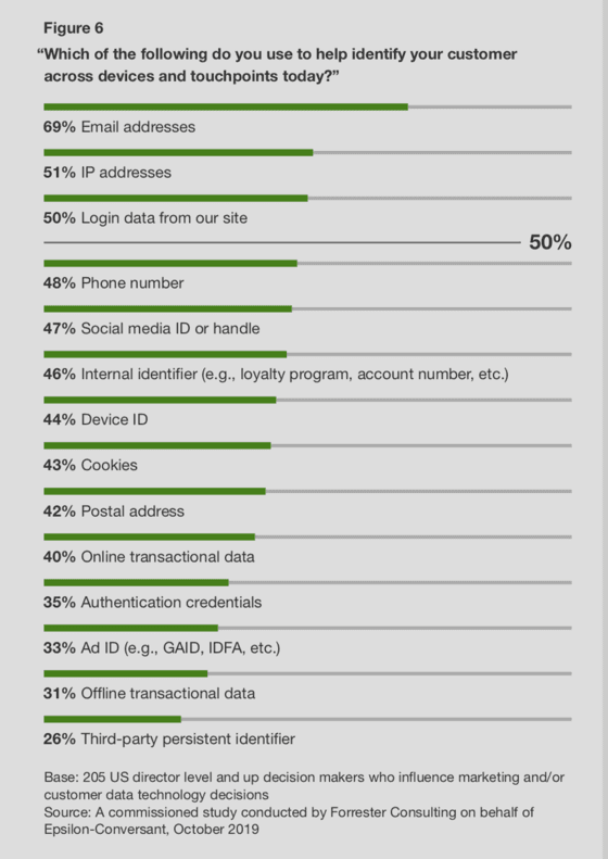 Although brands that currently leverage an identity solution are off to a great start, there is potential to think bigger. Forrester’s research found that many programs are too narrow in scope and ignore important identifiers. The report notes: